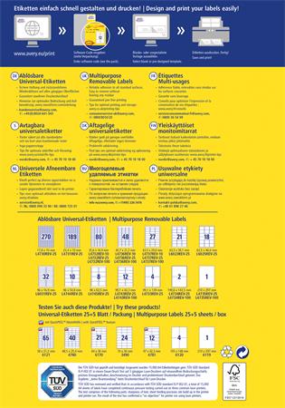 Etikett, univerzális, 63,5x38,1 mm, eltávolítható, kerekített sarkú, AVERY ZWECKFORM, 630 etikett/csomag
