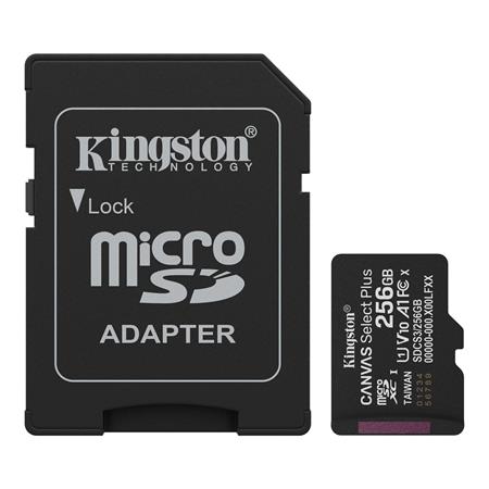 Memóriakártya, microSDXC, 256GB, C10/UHS-I/U1/V10/A1, Gen3, adapter, KINGSTON "Canvas Select Plus"